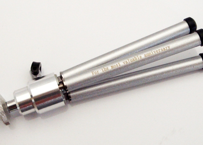 カメラ用三脚に文字彫り加工(アルミ製) |