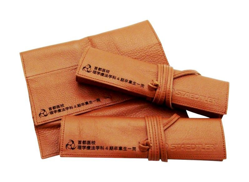 ペンケースに記念文字彫り加工 (合成レザー製) |