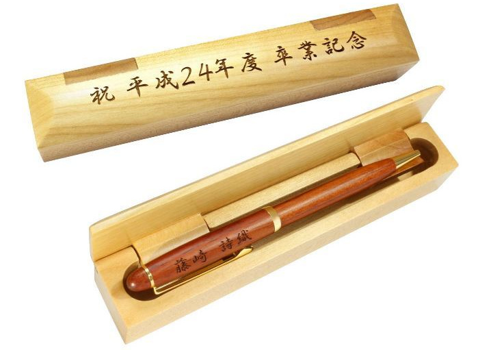 ペンケースに記念文字彫り彫刻 (木製品) |