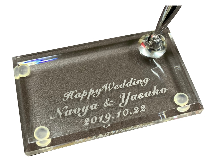 アクリル製ペン立てにメッセージ彫刻 (結婚式記念品) |