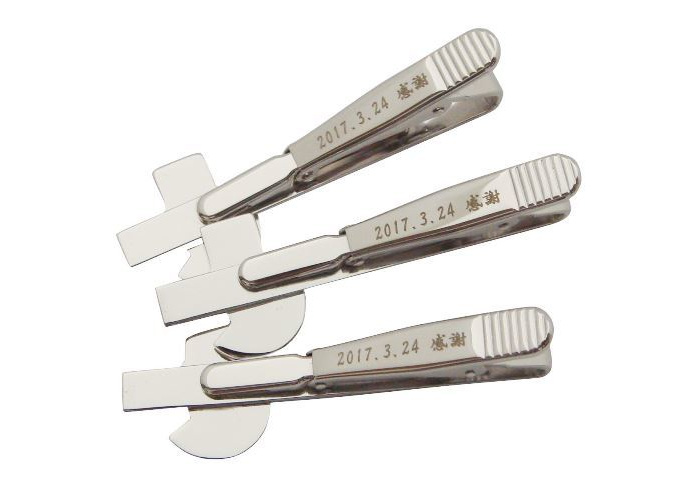 タイピン、カフス、靴ヘラなどのレーザー刻印、レーザー彫刻加工例