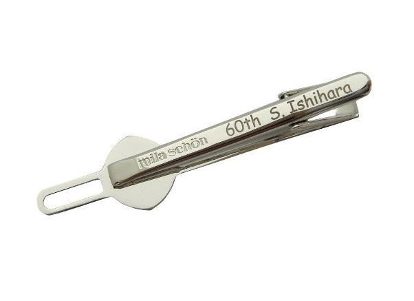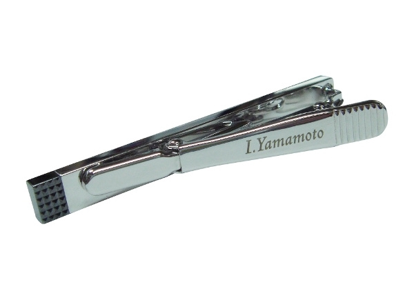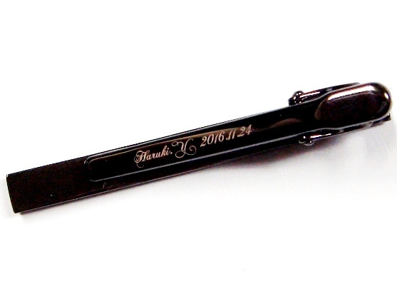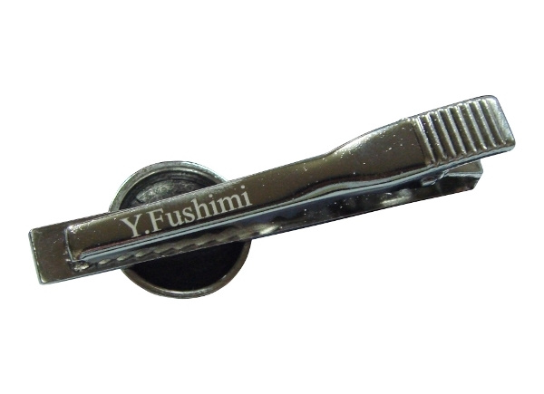 ネクタイピンに名前彫刻加工 |