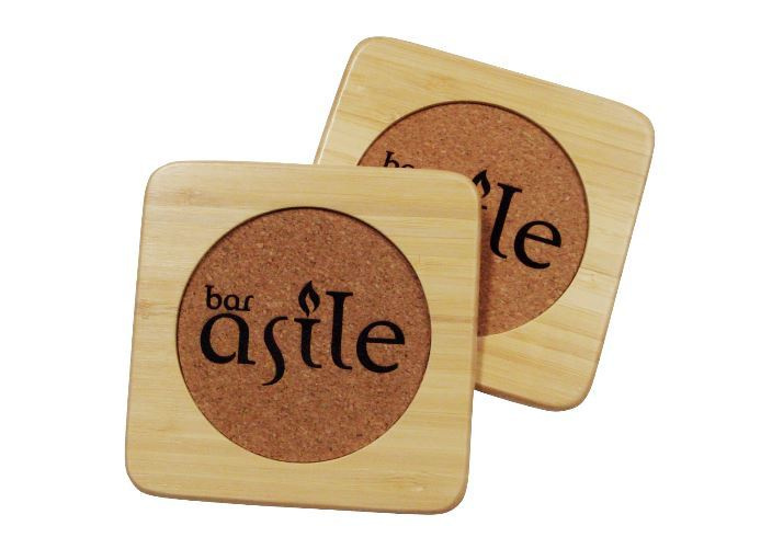 コルク製コースターに彫刻 会社名刻印加工 |