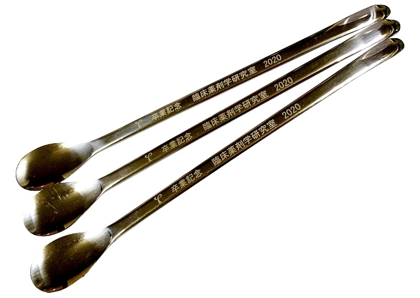薬さじにロゴマーク、文字彫り加工 (卒業記念品) |