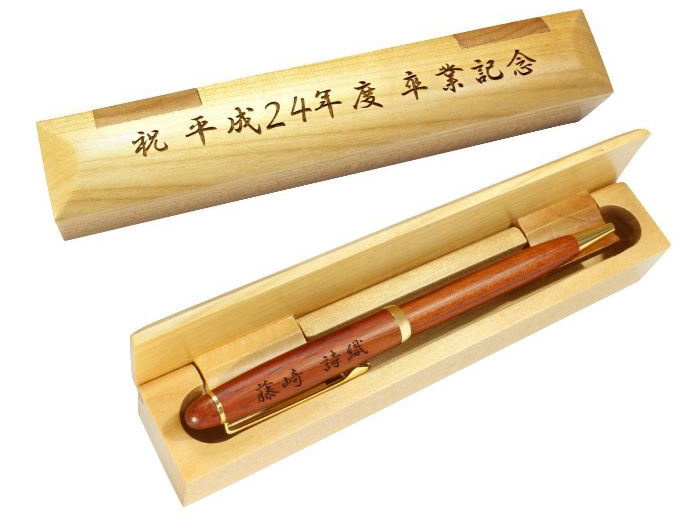 木製ペンケースに彫刻 記念贈答品に文字彫り加工 |