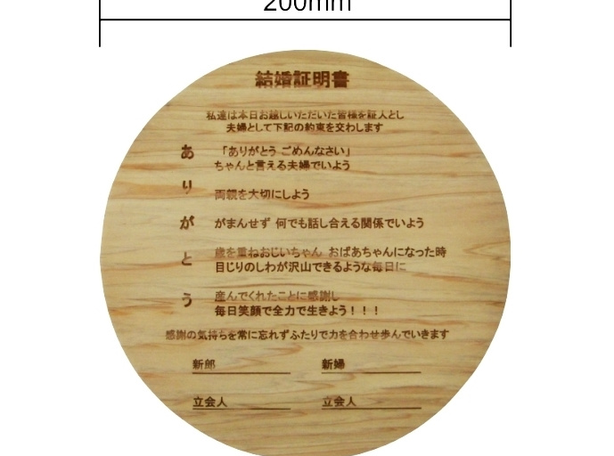 木板の結婚証明書 文字彫り彫刻加工 |